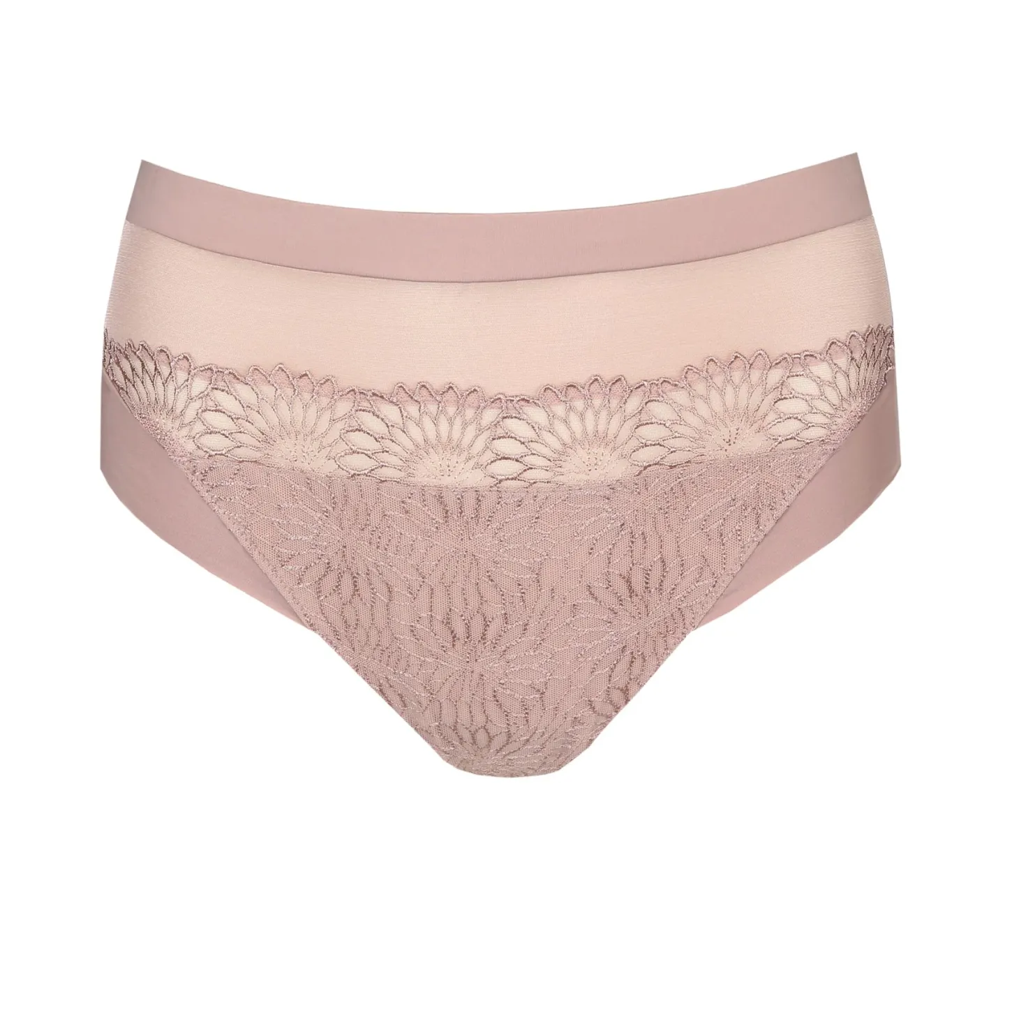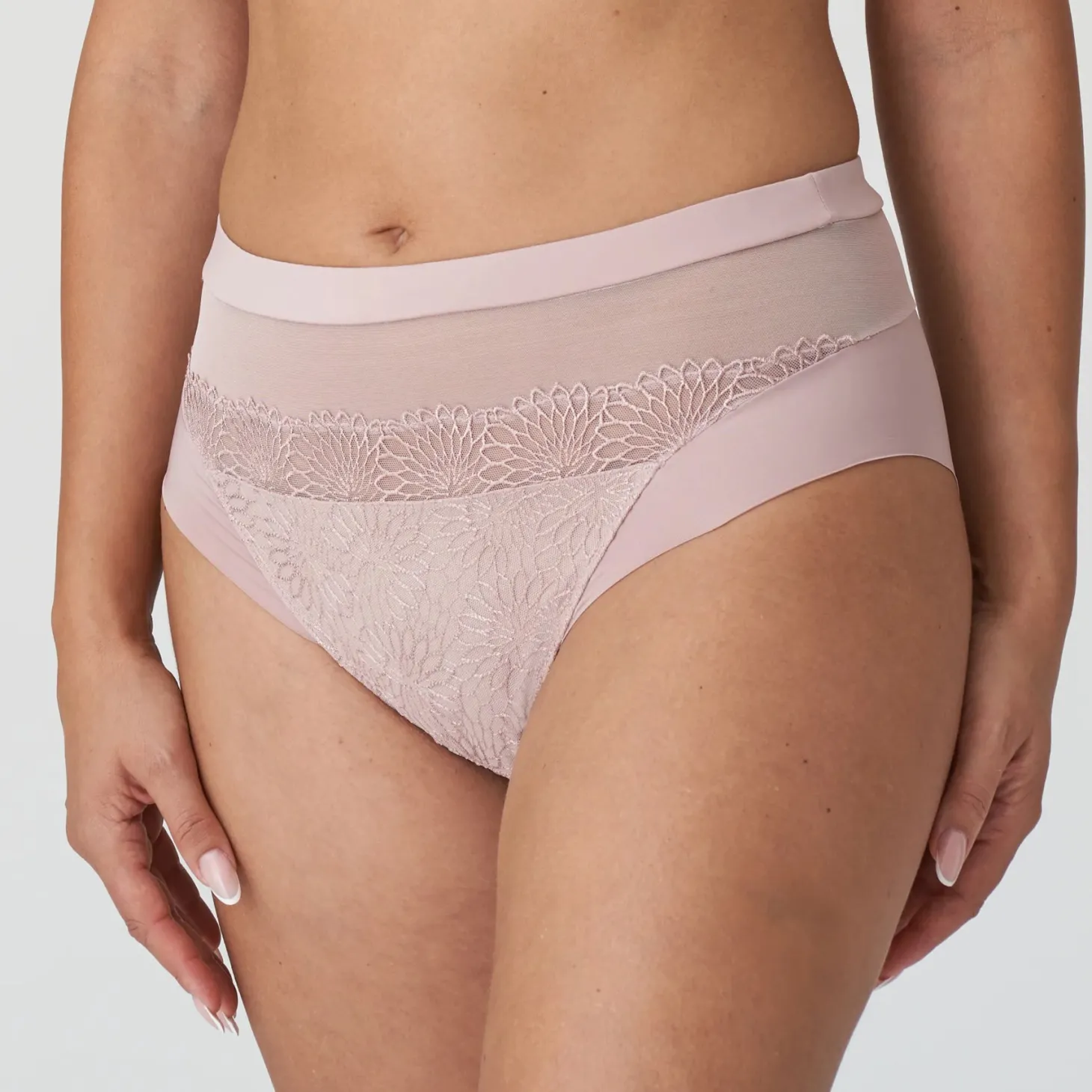 - Design: High-waist full briefs with embroidery on nude tulle. For a bold tattoo look!