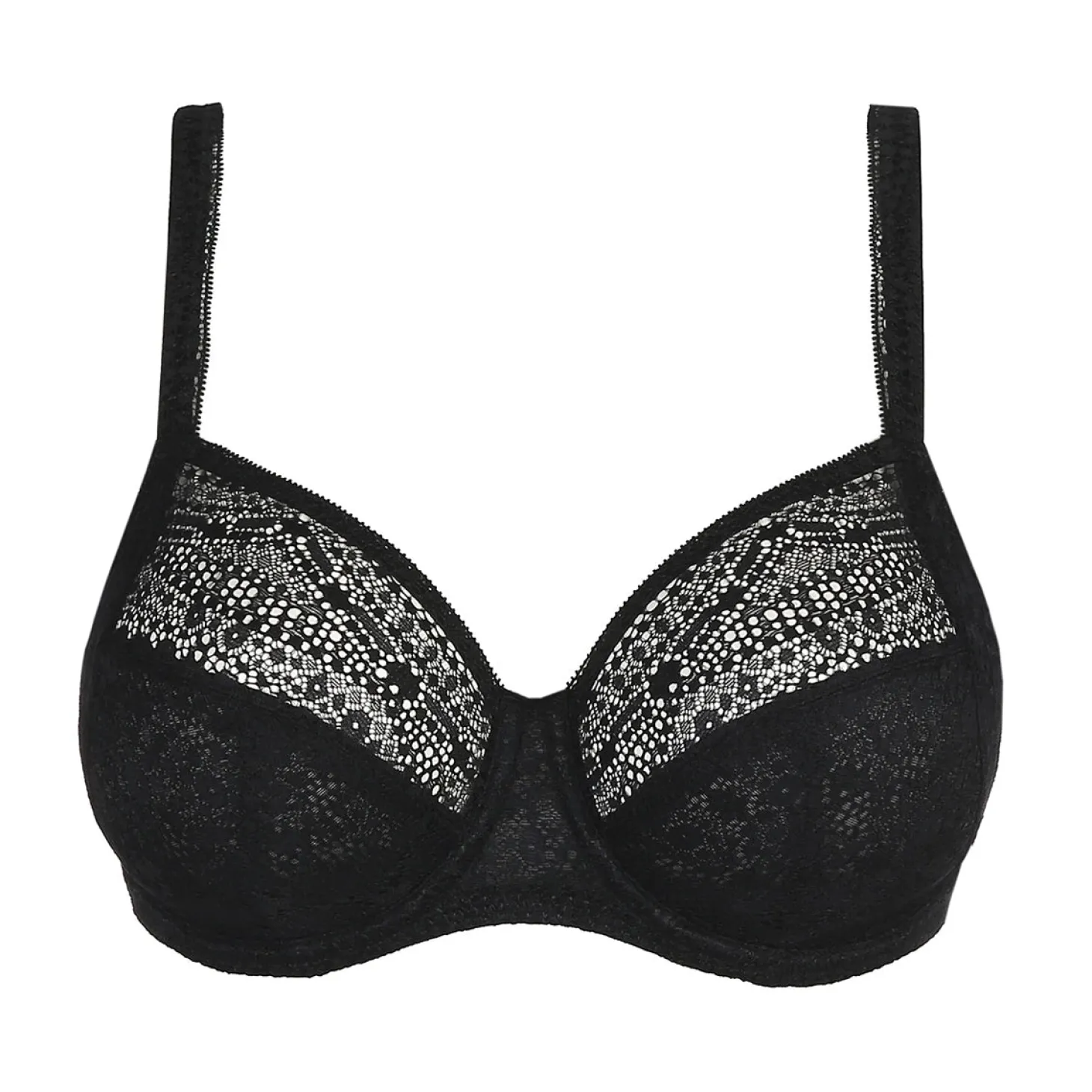 Stylish underwire bra with all-over vintage lace that continues onto the straps. The delicate lace guarantees a seamless look under clothes.