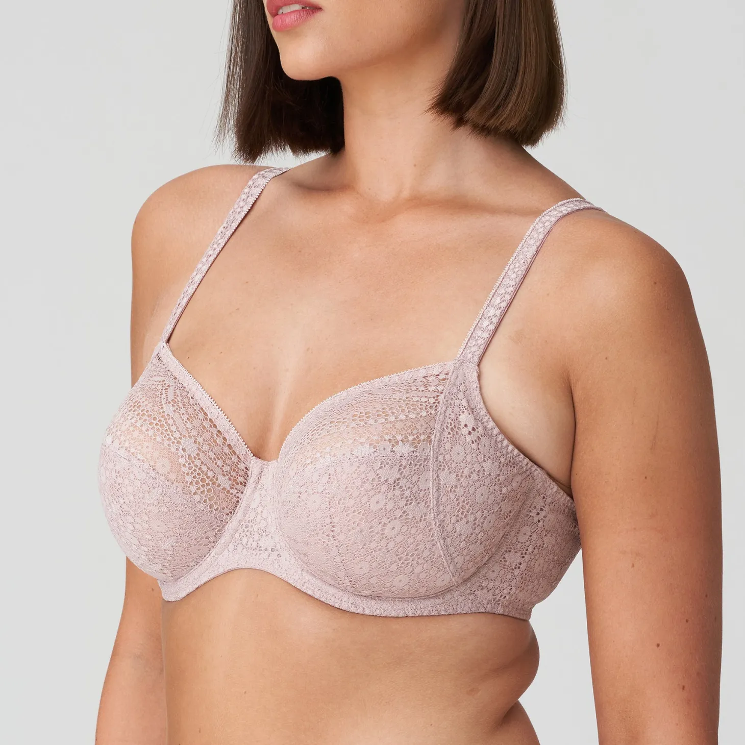 Stylish underwire bra with all-over vintage lace that continues onto the straps. The delicate lace guarantees a seamless look under clothes.