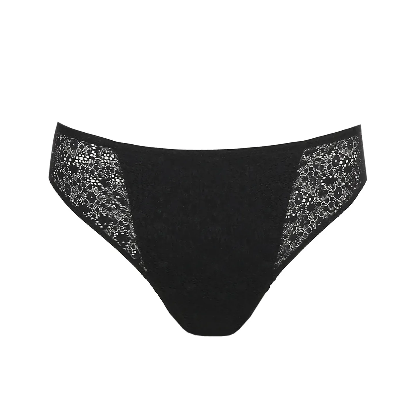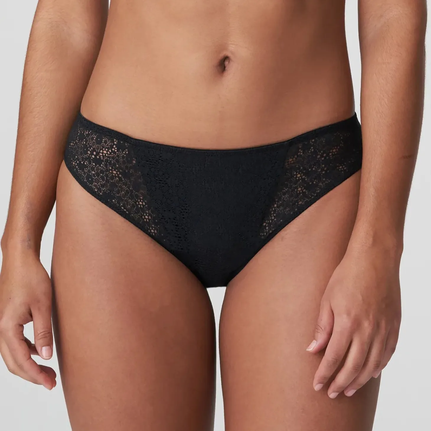 - Design: Lace front bikini panty; satin-look back.