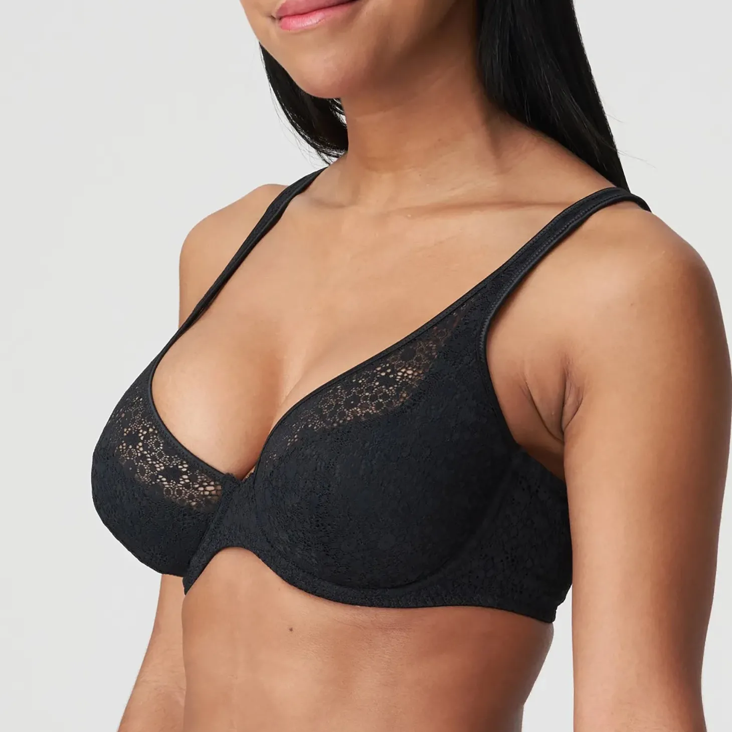 A trendy triangle cut with vintage lace and extra-deep-cut cups. This deep-plunge triangle style is sure to become your go-to party bra! Black is a timeless classic.