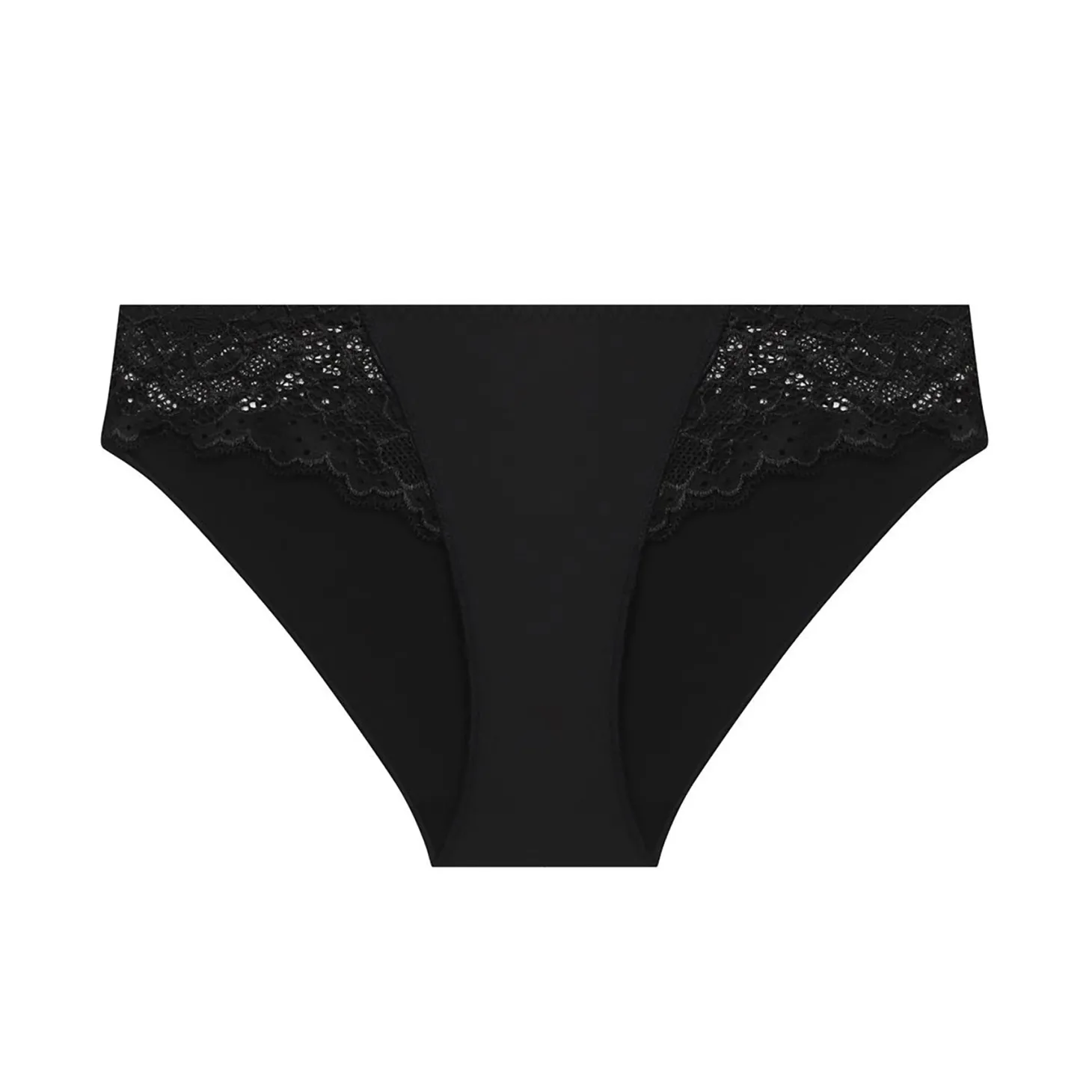 - Design: Mid-rise bikini with full back coverage. Weightless microfiber feels like a second skin. Ultra-soft stretch lace with scalloped trim at hips continues along back. Lace is woven with a blend of matte and sheen threads for a chic finish.