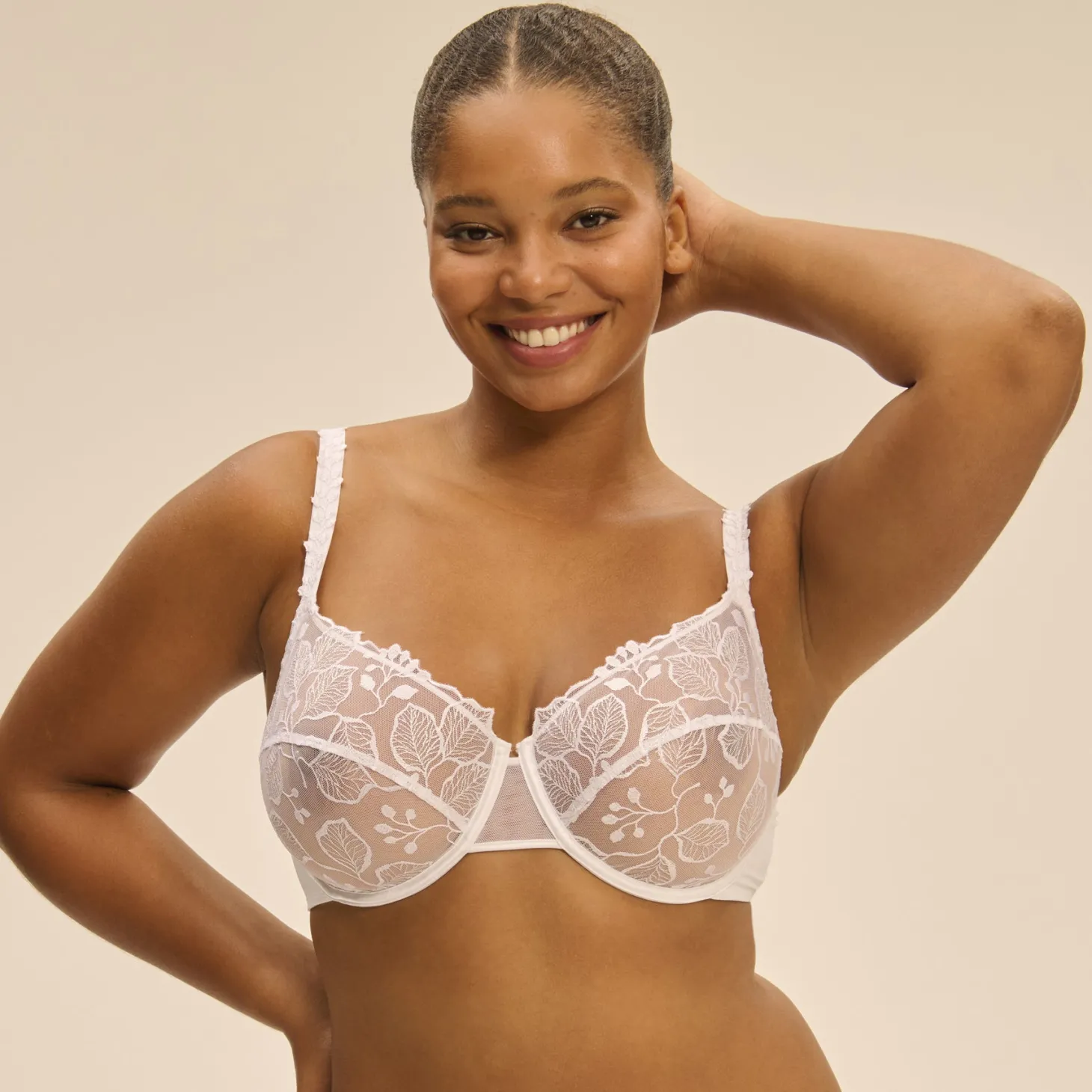 Effortlessly elegant – this embroidered sheer bra blends support with botanical beauty for a naturally stunning silhouette.