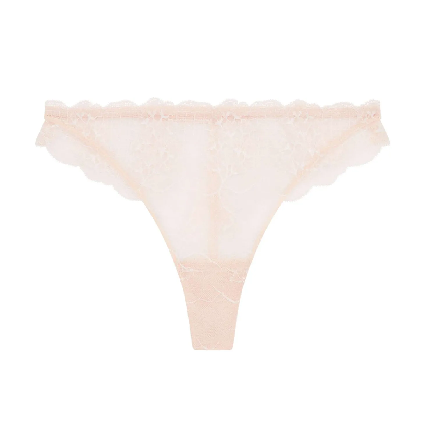 Adorn your curves in lace. The Reve thong is embellished with scalloped lace at the waist and on the curve of the derrière. Minimal and invisible under clothing, this panty includes a 100% cotton gusset for comfort and practicality, all day long.